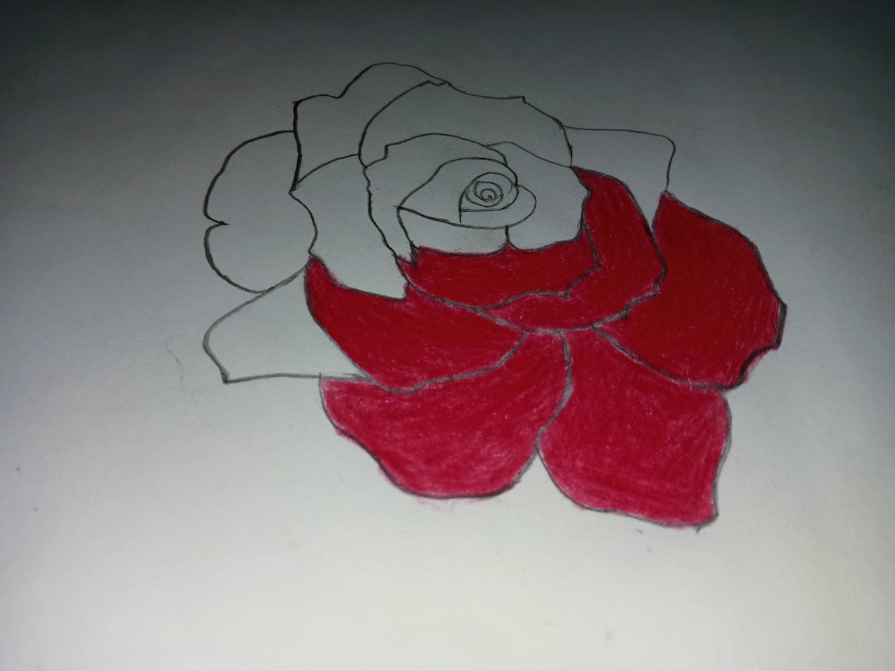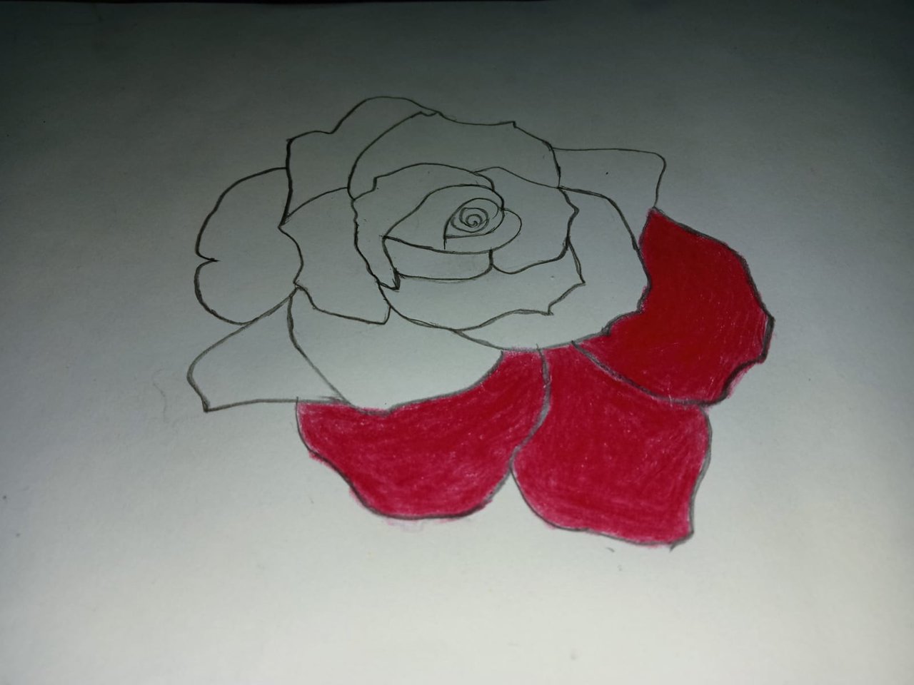 Now I colored the remaining petals on the left side. I finished coloring my drawn rose.