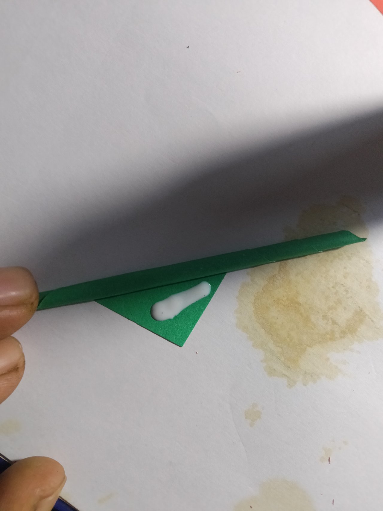 After cutting out all the papers, make flowers with the red round papers I started making flowers.I shaped the papers into flowers with flour. I made a beautiful pipe out of green colored paper and attached it to the head with flour.