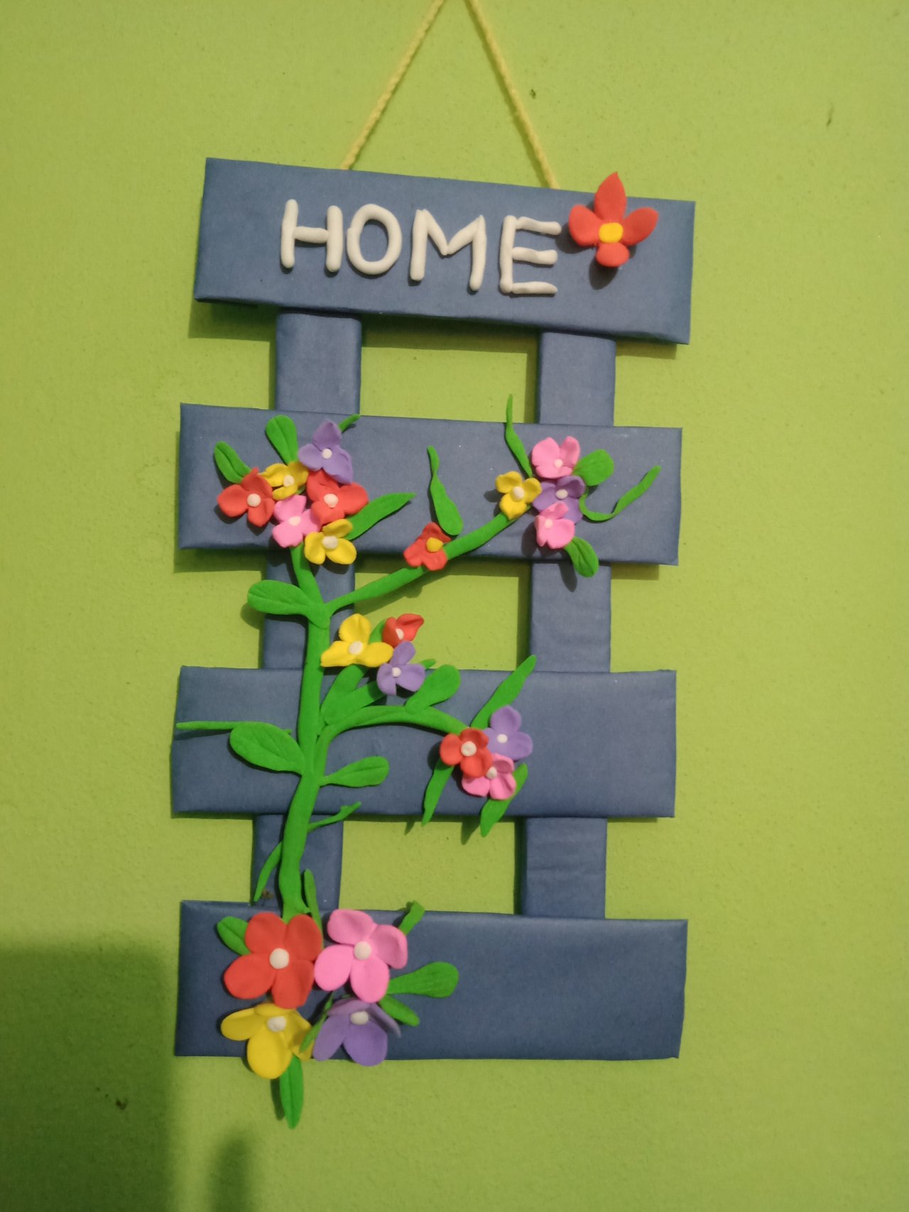 Now I wrote HOME on the wall hanging with white colored clay and completed my work here.