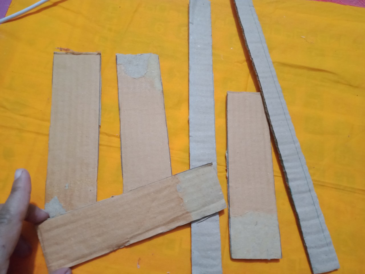 In the first step, I cut a 12"×1" cardboard. And I cut a 6"×2" cardboard to put it in the middle.