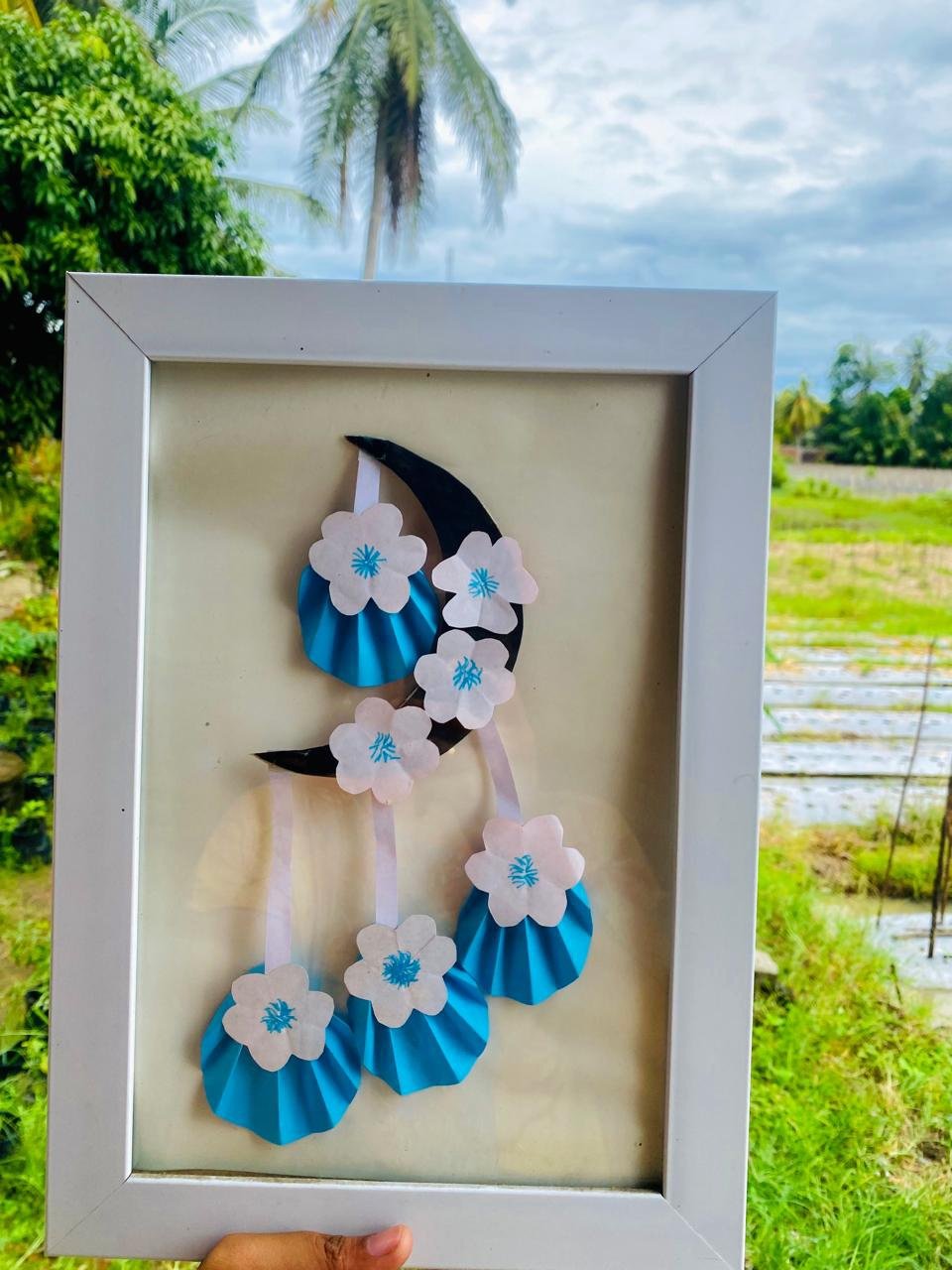I got the idea to make crafts from paper when I started going to a paper shop in my area. I saw some works on display that were made from origami paper. I started to have the idea to make wall flower decorations from origami paper and this beautiful wall decoration was created.