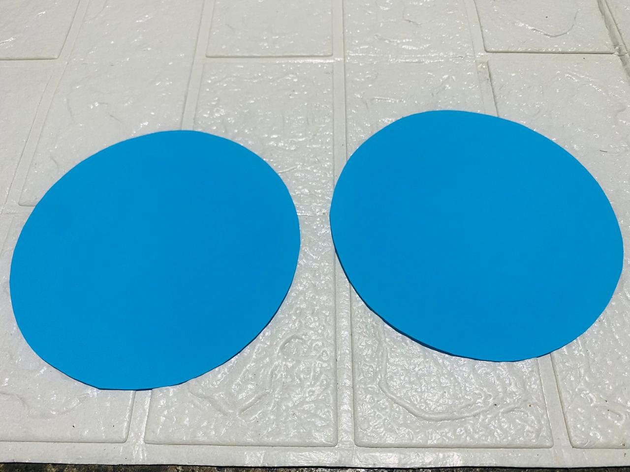 - The next step is to cut the blue origami paper into a round shape as the first flower by folding it back and forth until finished, then separating it into two parts.