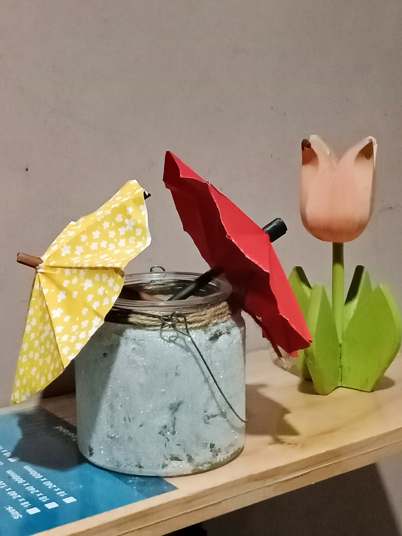 But instead of showing you my usual umbrella, I will share with you something that I made myself out of a special colored paper. This art of folding paper to make objects is called Origami.