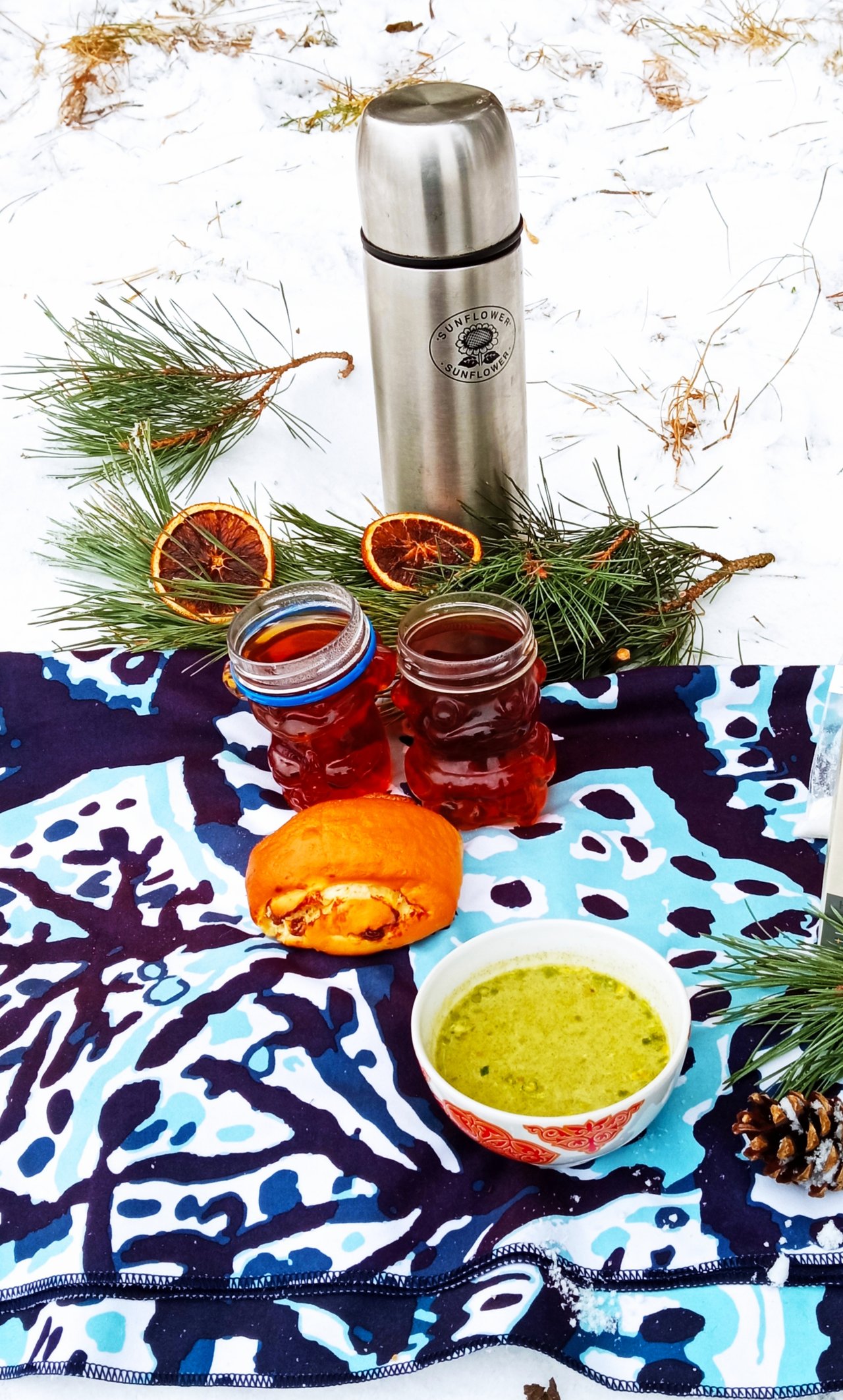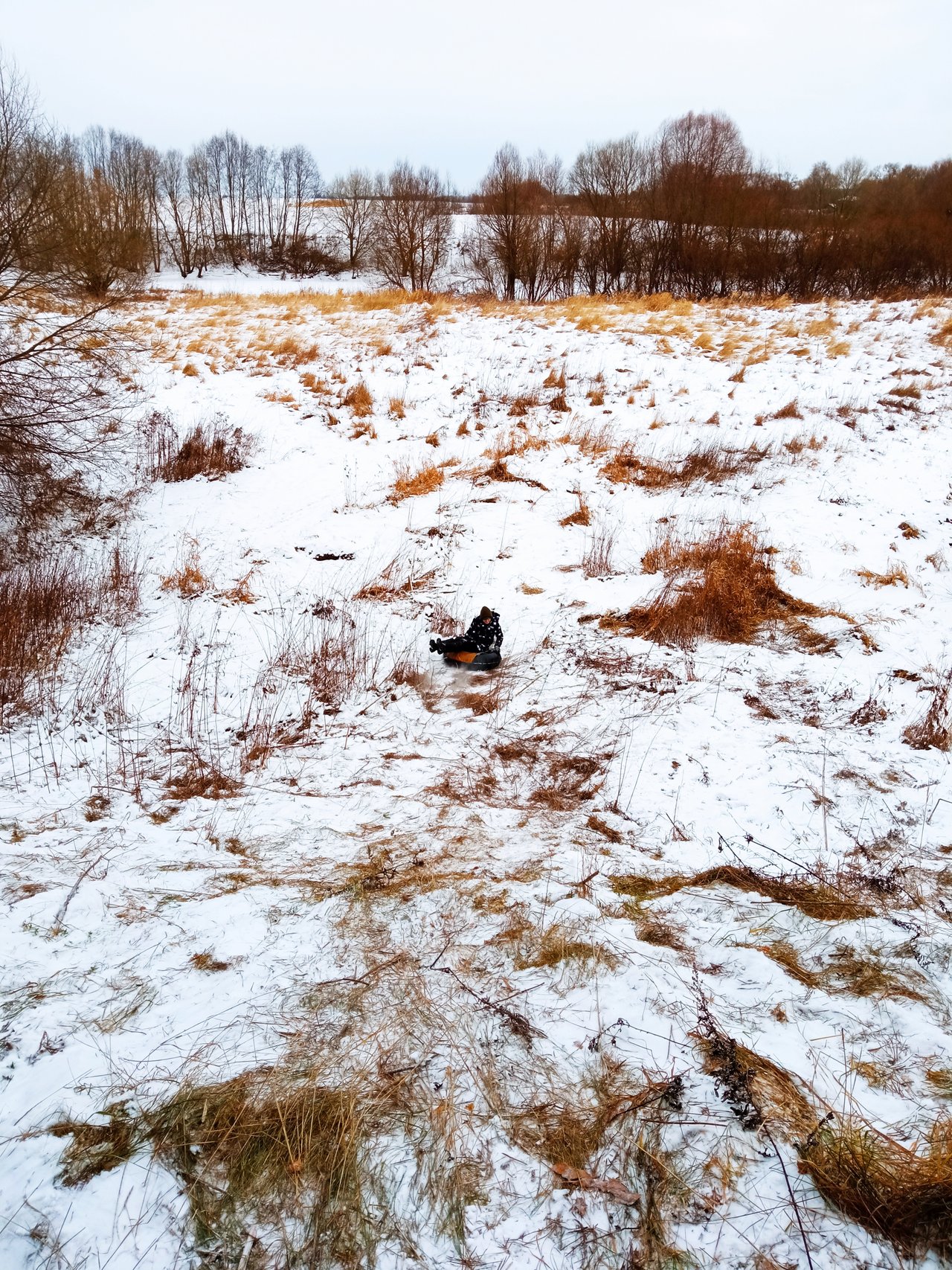 Зимняя погода продержалась совсем немного и сегодня днём был плюс. Снега не много, да и этот под угрозой исчезнуть. С такой зимой дети могут остаться без зимних забав, поэтому сегодня накачали ватрушку и вышли на природу. С собой взяли горячий чай.