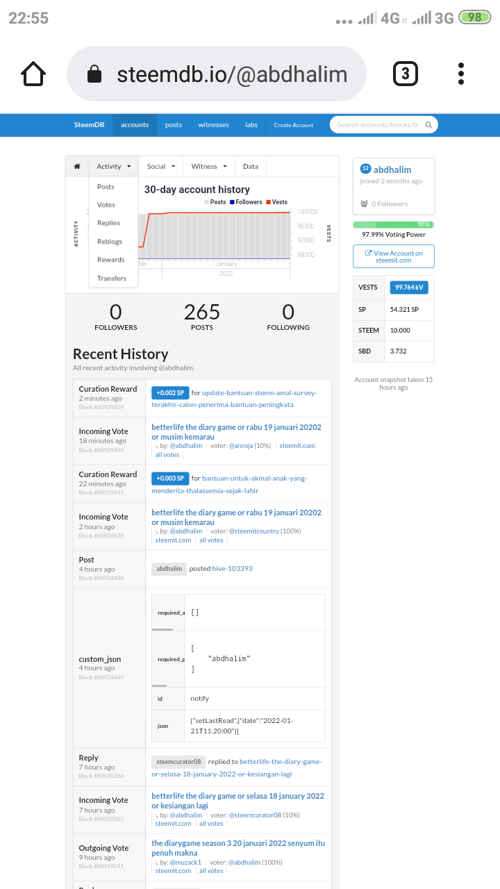 Achievement 5 Task 4, by @abdhalim Review steemdb.io