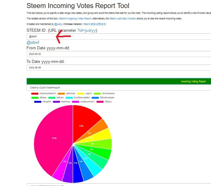Press steem Input votes Report will appear some options, we must write down ID d e our account and the corresponding dates, then a graph will appear with our votes received.