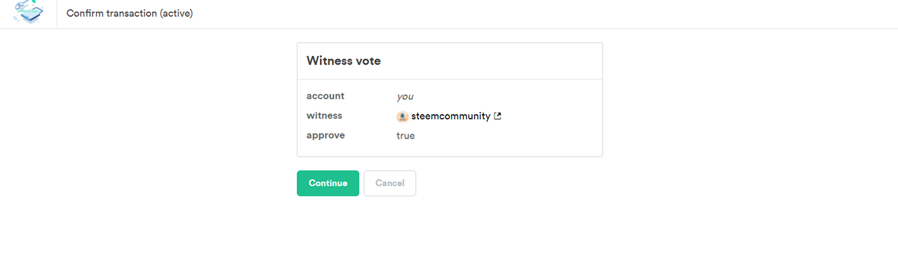 To vote for a witness, go to the "witnesses" area on the right and click the "vote" option. The steemscan site will send you to the Steemlogin page if you select this option. On this page, you must select "Continue" from the drop-down menu.