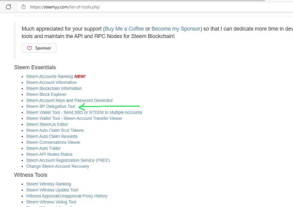 Once there we will see a list with the tools offered by the page, in this case we will click on "Steem SP Delegation Tool", as we will see below: