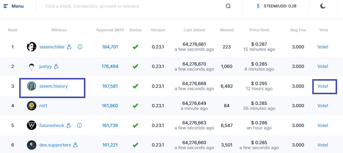 Menu witnesses how to vote for witnesses