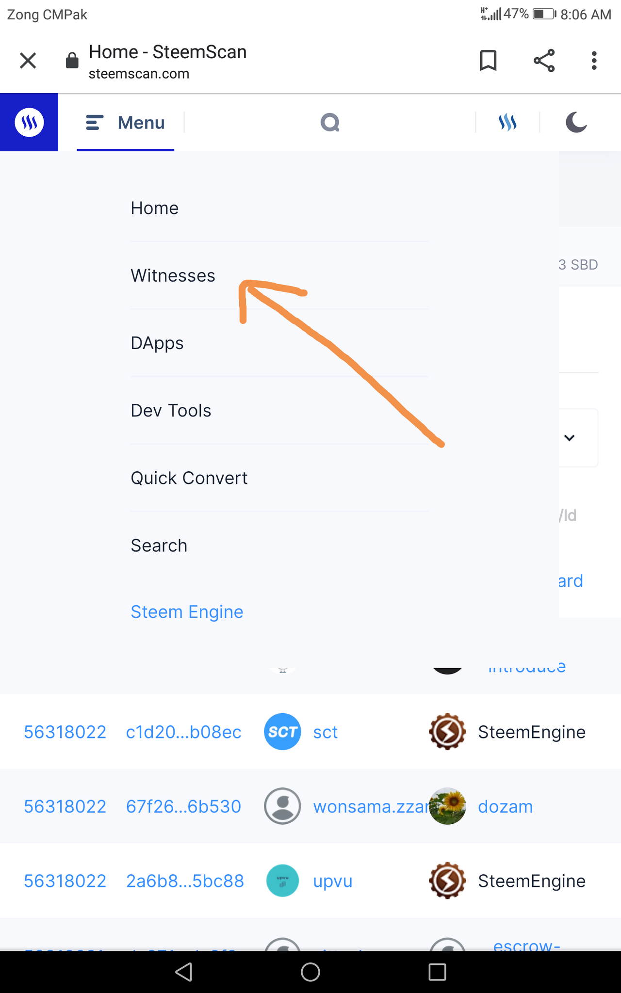 Let me tell you friends here that the user can vote for this witness. For this you all have to click on the menu first and then you will have the names of the witnesses. I've taken a screenshot of it and shown it to you all.