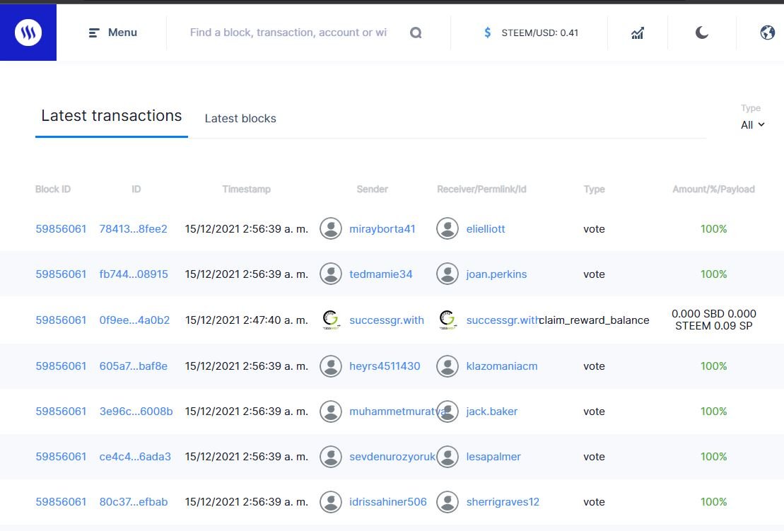 En esta sección vemos la información relacionada a los testigos donde ellos son los que generan nuevos bloques que constituyen la cadena, en la cual podremos ver la opción de votar al lado derecho de la pagina donde dice Vote.