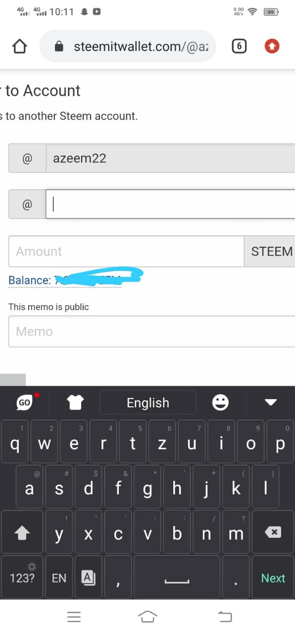 After this,you have to enter the user name whom you would transfer your steem.Here is the picture of this process.