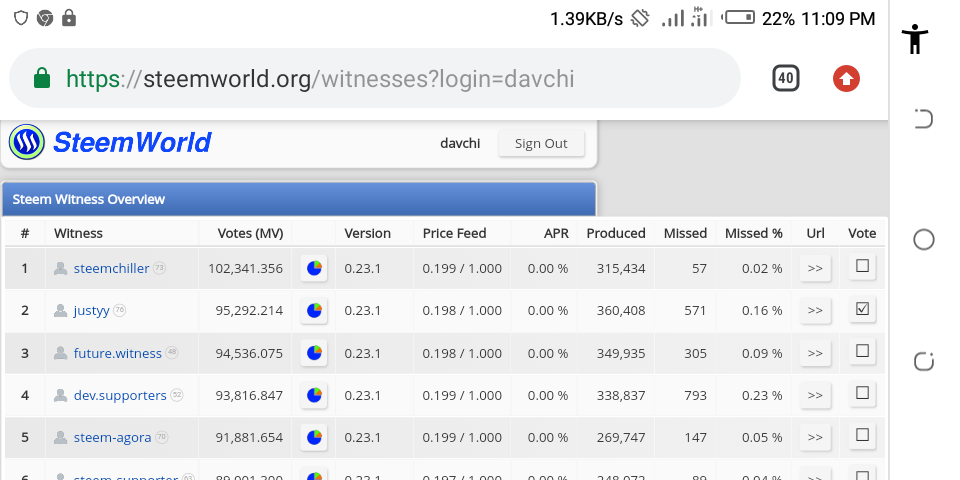 WITNESS: these are different developers and great inventors in the steem ecosystem which has contributed immensely to the sustainability of the system. Most of them are: @justyy, @steemchiller, etc. You can view it below where i voted for @justyy