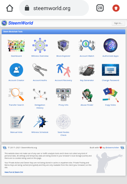 As a newcomer in a steemworld, using your android phone open your chromes app and type steemworld.org.com into the search engine. A page is being open and your are require to enter the username and active keys, steemworld page will be open which will contains steem blockchains tools. Such tools includes, dashboard, witness overview, delegation history, account creator and some other importances tools