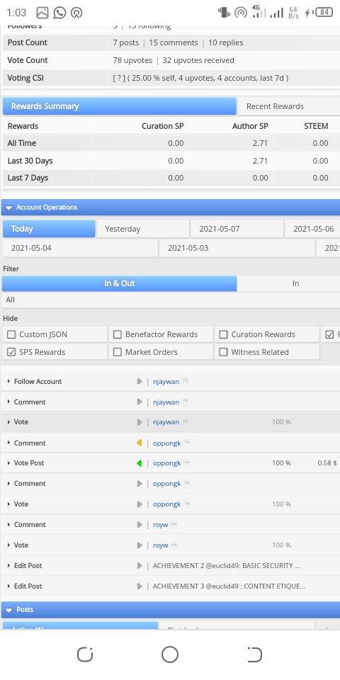 The all time records every is activities and transaction made since the account was created and the last 7 days will records all activities in the past 7 days in terms of transaction. And the last 30 days also records all the transaction and activities which includes voting, posting, comments, reply and others. The reward also shows Curation SP ,Author SP, Steem and SBD