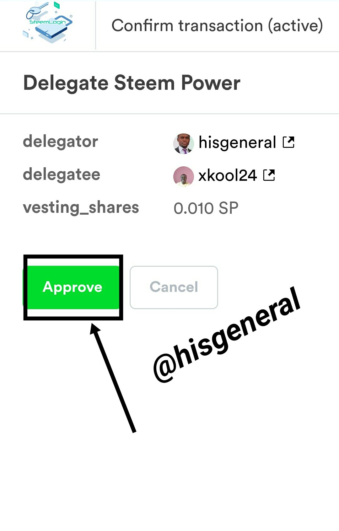 - On the next interface, fill in delegator ID, delegatee ID and Amount then choose your preferred means of delegating. (Shown below)