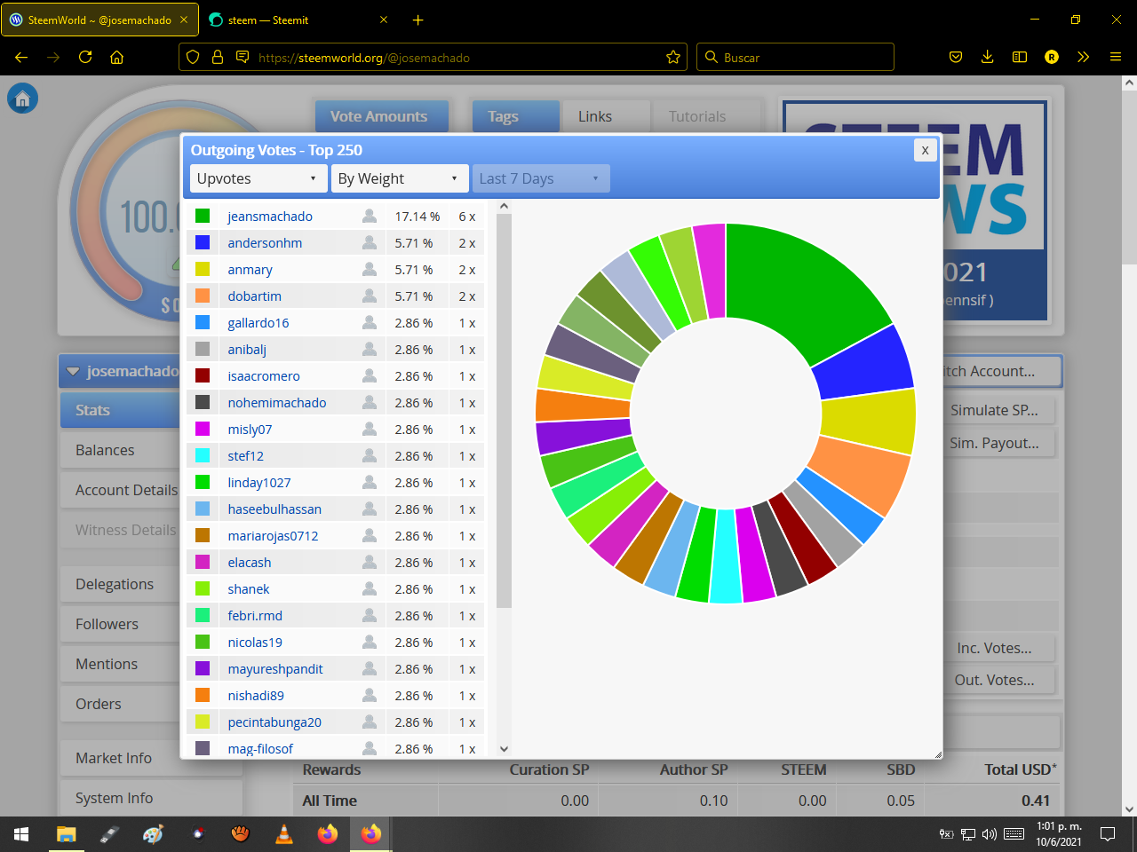 En la segunda opcion visualisaremos outgoing votes vemos los votos realizados y los usuarios más votados por nosotros en esta plataforma
