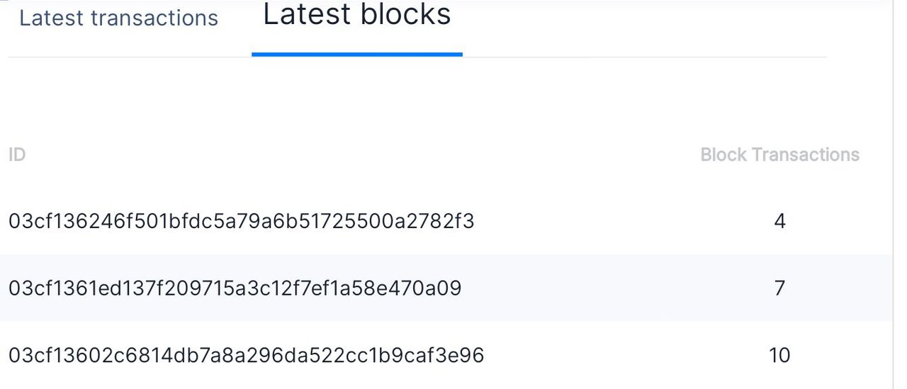 We can see all information of the completed transactions under the latest transaction block. The block ID, the transactions ID and transaction time are all visible as well as the