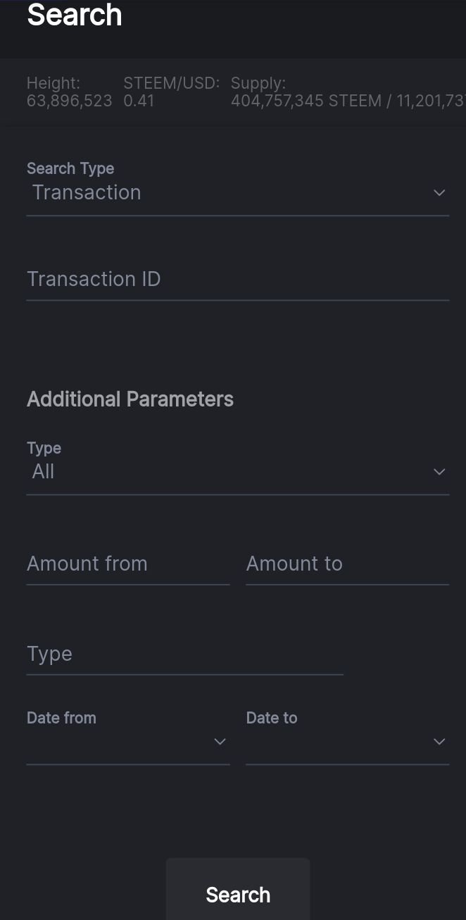 You can get information of transaction, block, accounts, power up and power down and other things by using the search feature.