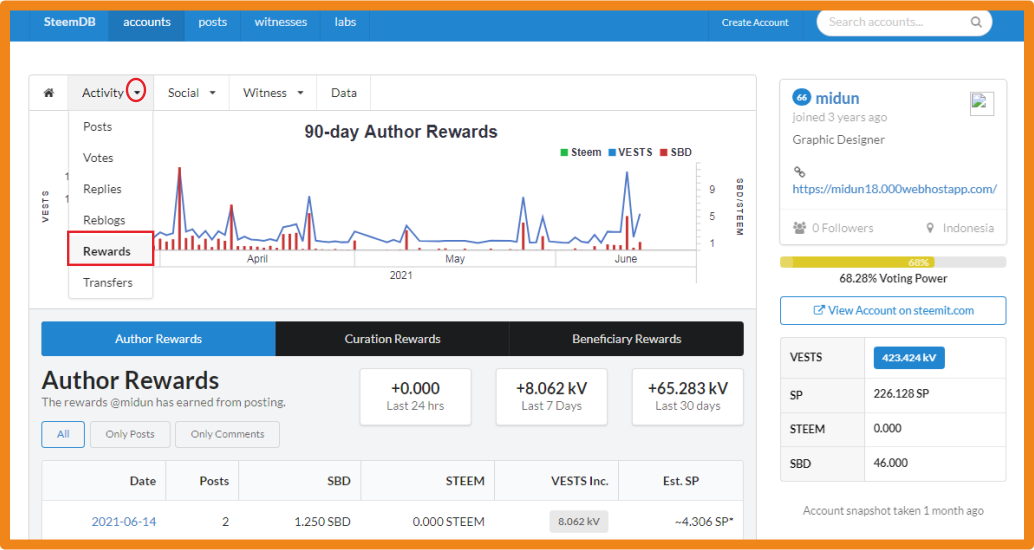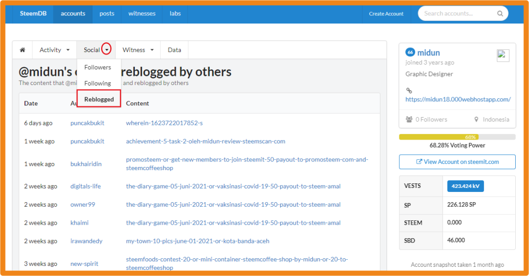 Note : Semua tangkapan layar gambar di atas saya ambil dari website Steemdb.io