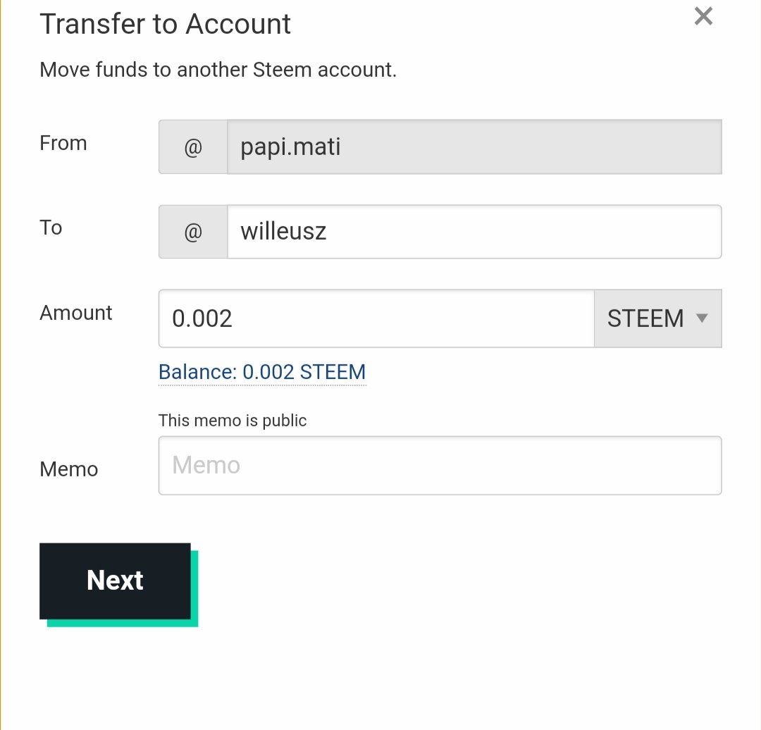 Now it's time to make the decision how much money I want to transfer, enter my Memo key and click "power up".