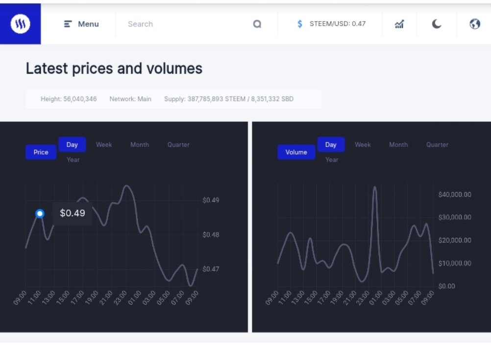 The steemscan page has a chart or diagram which display the lastest prices and volumes of steem.