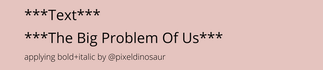 Before the the Table, we could find The Big Problem of Us in both (Bold+Italic) style. To apply bold, we have to put double star aroud the text (see picture 3), to appply bold+italic use 3 star aroud it (see picture 4). But to format italics on text, we only apply one star around the text (see picture 5).