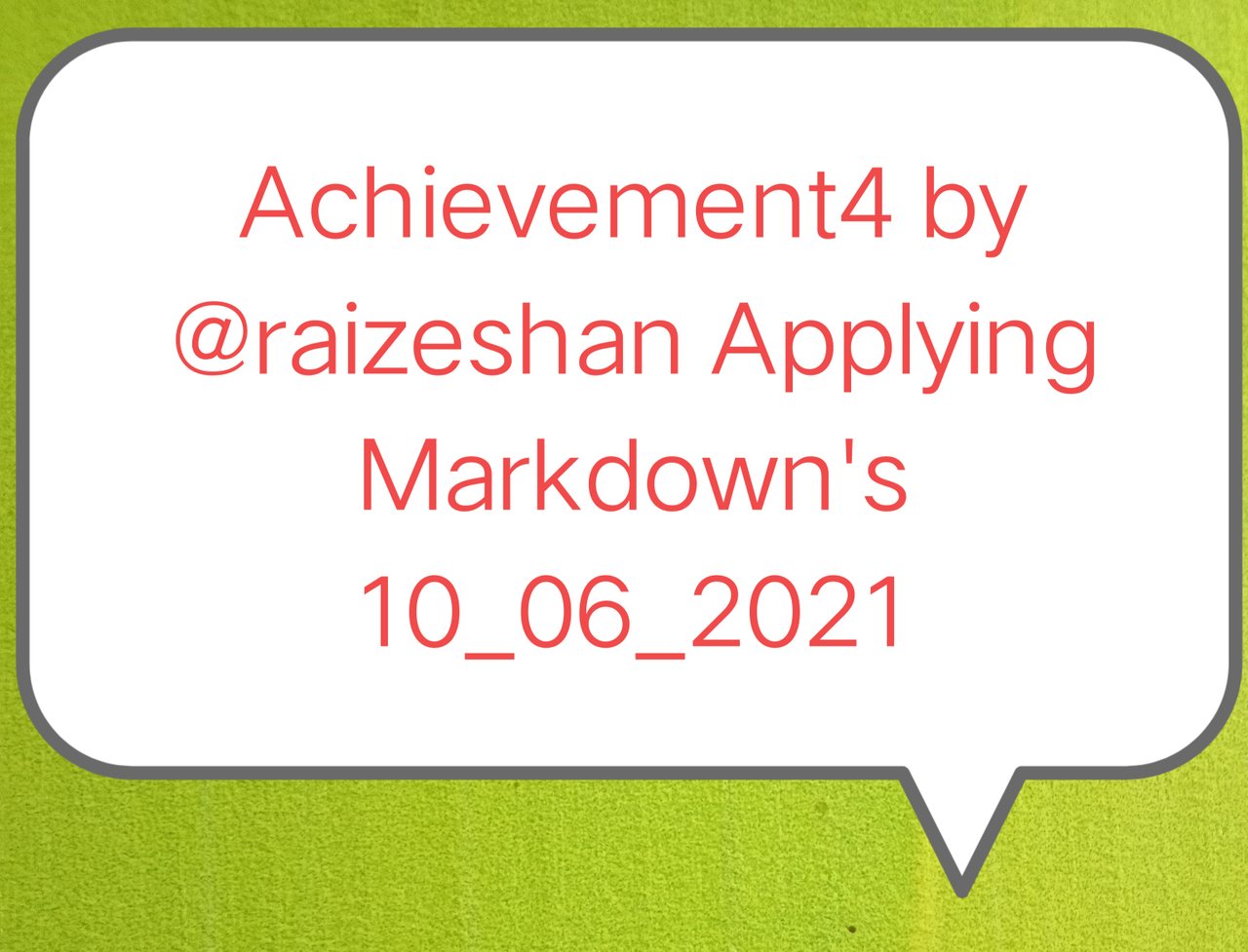 Achievement 4 by @raizeshan Applying markdown 10/06/2021