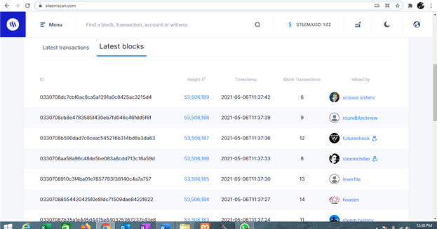 The screenshot above is an image showing the latest blog. It displays the ID and BLOCK TRANSACTION.