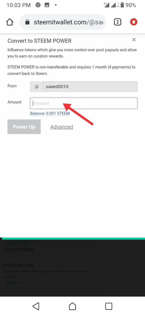 Click on arrow near steems.