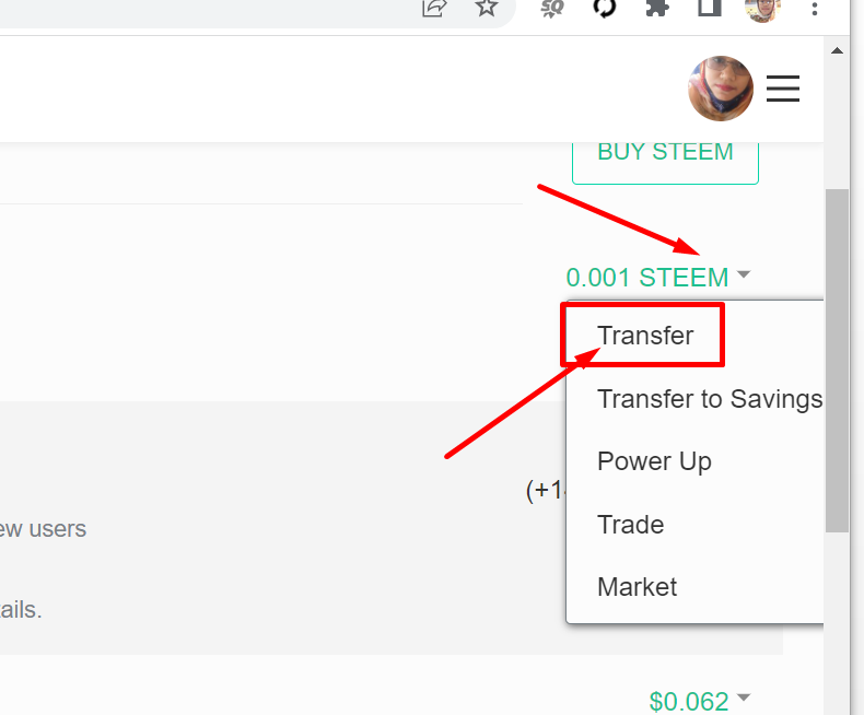 Step 2: Select Transfer by clicking on the bottom arrow in the steam, where the option shown