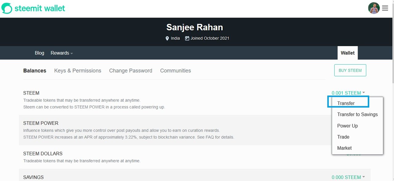 To make a STEEM /SBD Transfer, you can go through the Steemitwallet.com then select the coin you want to transfer. Is it STEEM (marked green), or STEEM DOLLAR (marked blue)