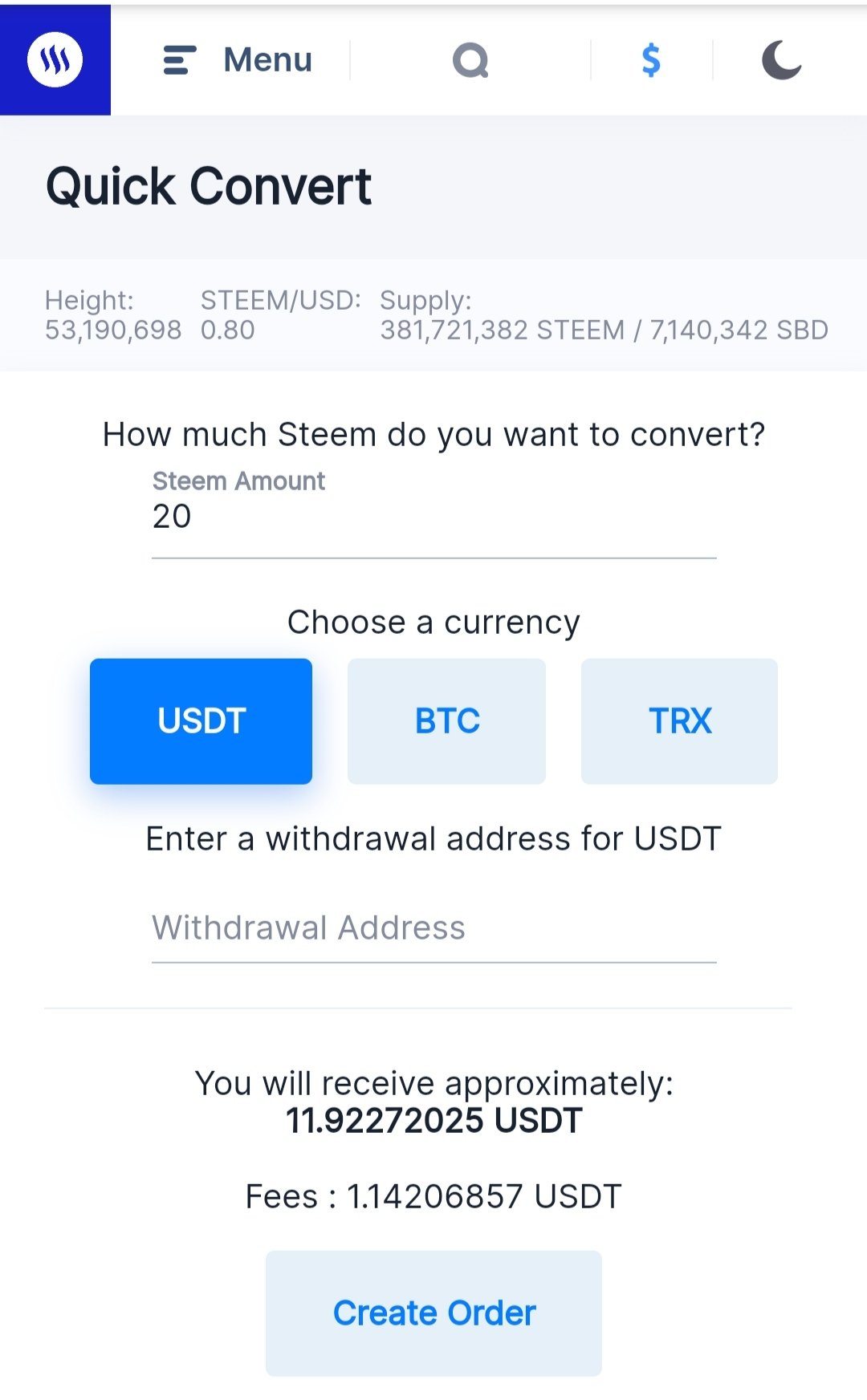 You are allowed to convert your steems into currencies like USDT and Trx and bitcoin and it takes almost nothing. And to convert you have ti enter steem amount and then convert using active key.