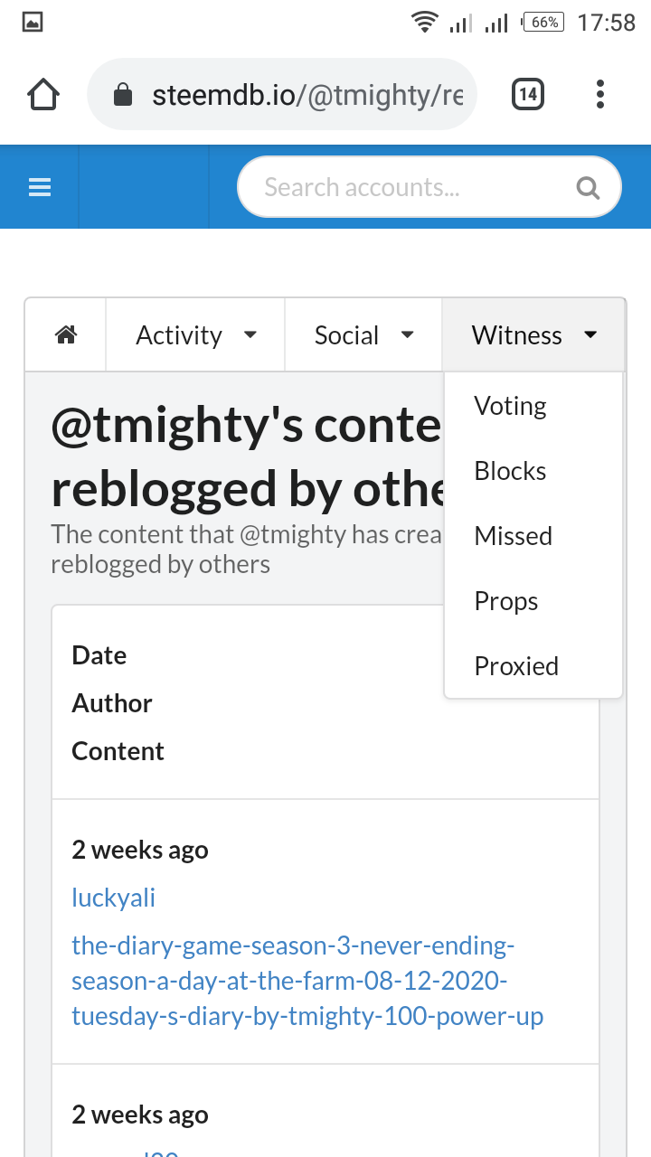 - From the page, where you have your contents reblogged by others, scroll down and you will see your voting power.