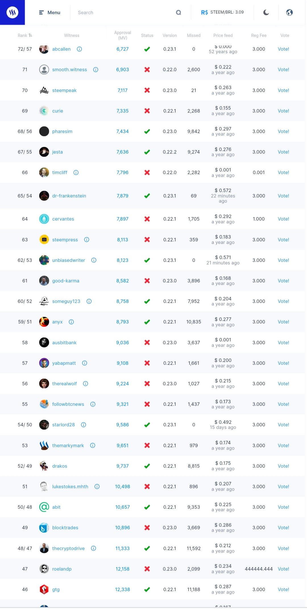 When verifying witnesses, please click Go to witnesses from the home button to show the top 200 witnesses