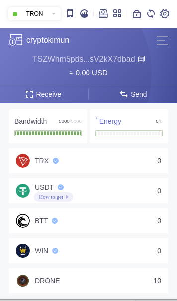 As soon as you open up your wallet you will see two bars: Bandwidth and Energy which are key to interacting with the Tron ecosystem:
