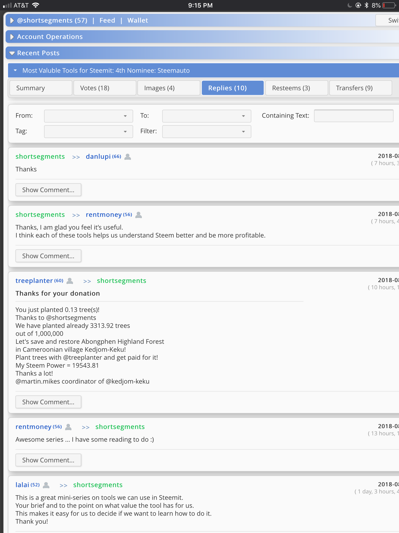 Anytime someone mentions you by name, the blockchain hears and Steemworld records it here. So you find out you won stuff, or you were ranked in someone’s ranking of posters like a country specific or topic specific type of post. This tells you if your a significant player in a niche or who to contact to collect your winnings. Plus you can thank people who write about your posts! Or if your a developer here is where you find out someone is writing a great review of your application, like me! Thank you @steemchiller!