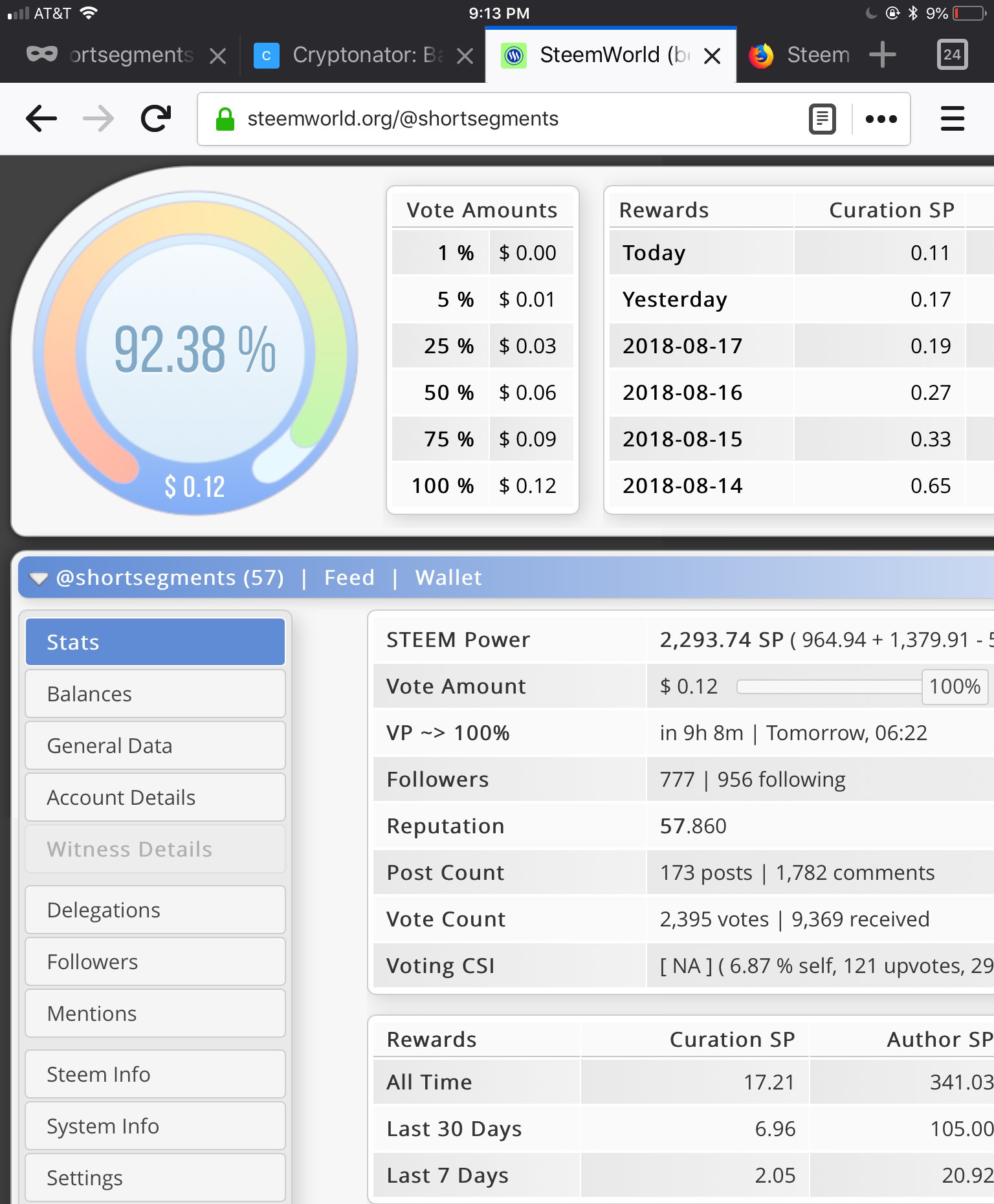 How much Steem Power do I have, how many followers, what’s my reputation; how close am I to increasing my reputation.