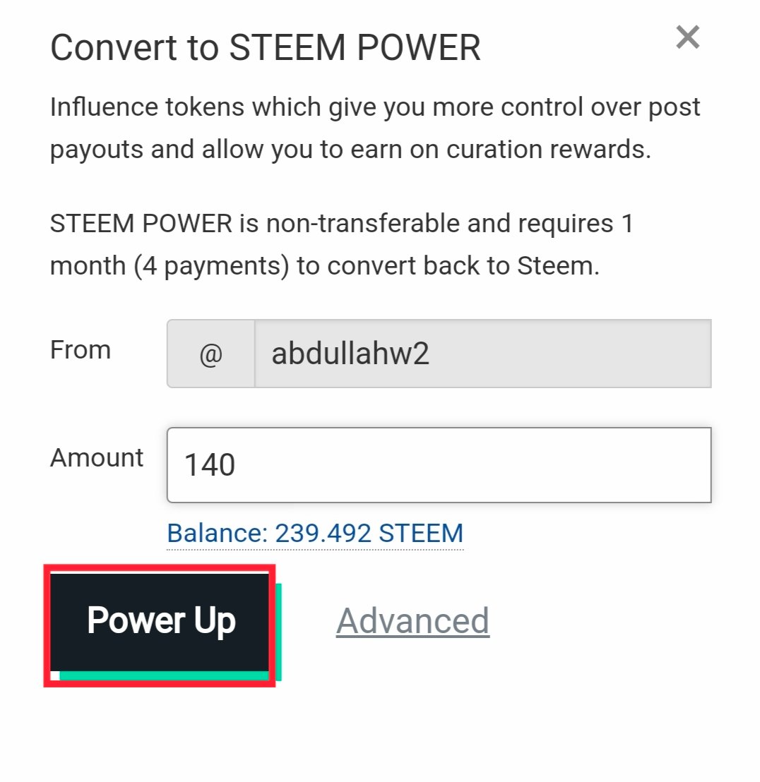 - In the third step I have selected the amount 140 steem which I want to power and then I have clicked on the power up option.
