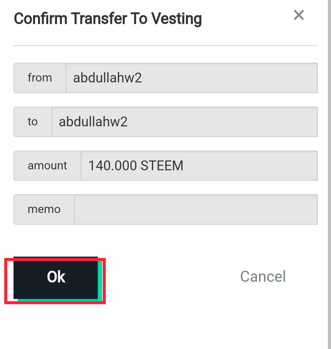 - In the forth step of my powering I have confirmed the transactions of converting my liquid steems into Steem power and then pressed to ok option.