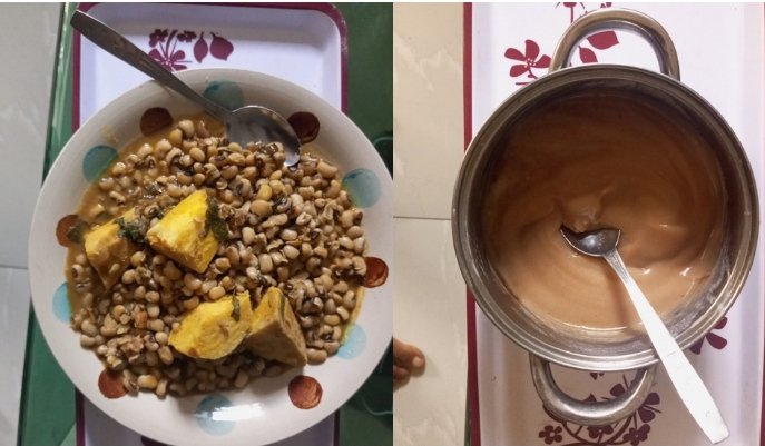 Here now, I cooked beans combined with yam . The other brown colored food is the Pap that I also made to eat alongside the beans and yam. This kind of food is a perfect combo especially for those that spends much time in their workplace or tasks that requires much energy to perform. So since I spend most of my time in my workplace, I have to eat the kind of food the would sustain me till the close of work.