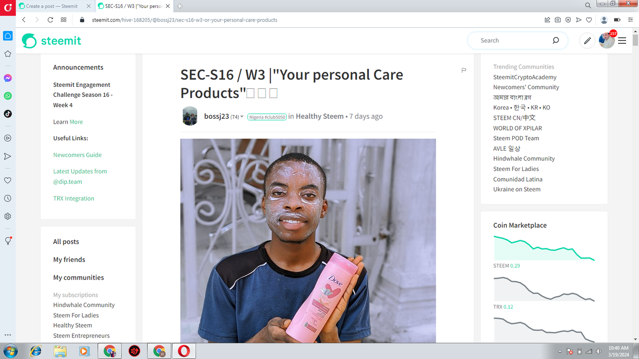 I liked his post because I really liked his post presentation and also he explained each of the products very well, their pros and cons, how to use them and how to maintain our health. And to keep it good, you should use good products, but I liked the way he explained so much, that's why I selected his post.And then apart from that, he applied each of the products on top of his face and told how to apply after-look and before-look, so that's why I like his post very much.
