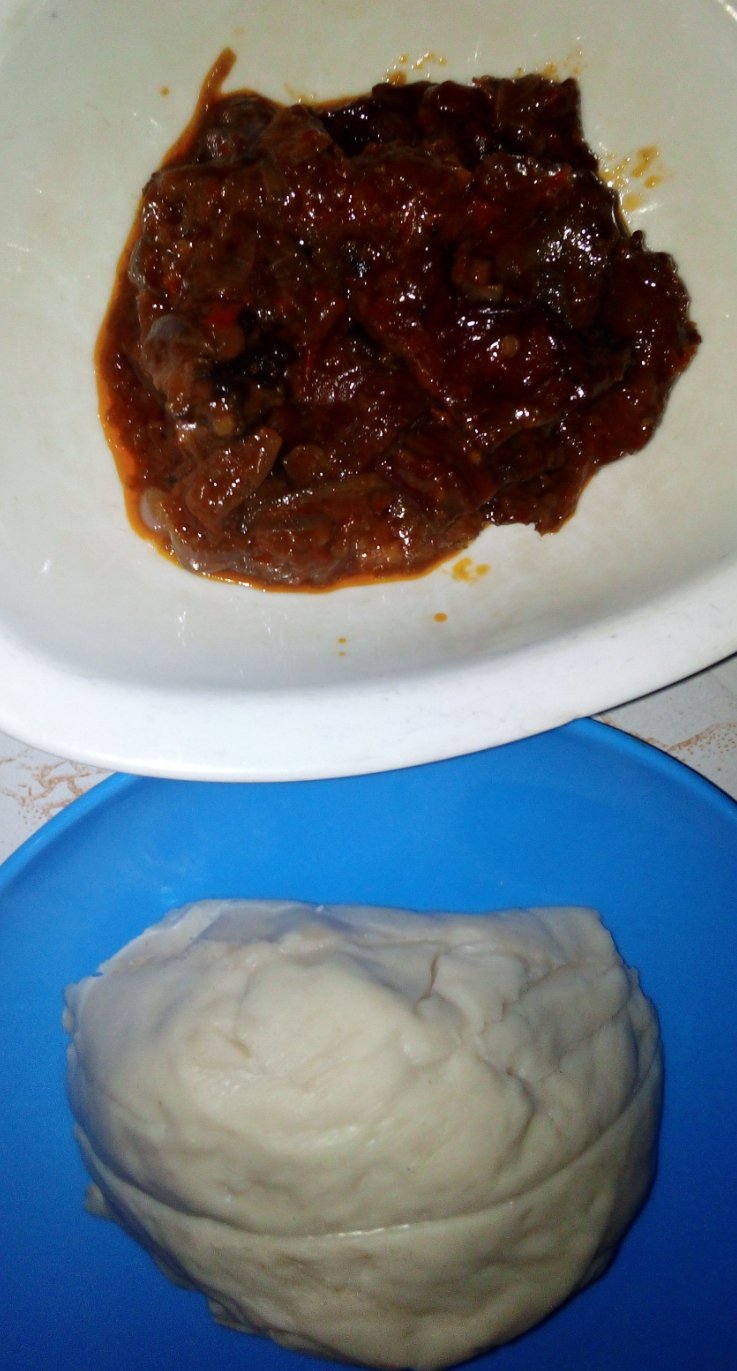 My lunch was so simple, I had Madidi in the fridge and I only made sauce to eat with it. Madidi is a very strong but light food. It is strong in texture but light while eating, it is not a very heavy food to the body system. I gave my best to cooking the sauce which I really enjoyed it.