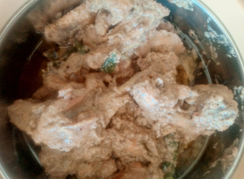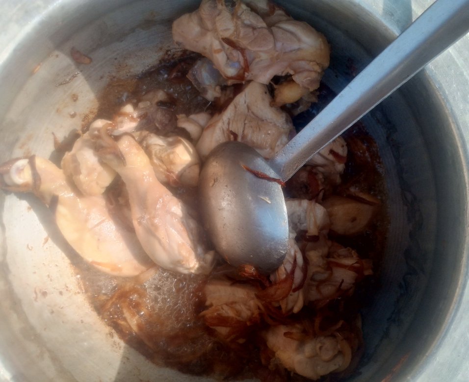 Tonight I prepared white handi for dinner. I started by granding the onions in a grander and cooking them in oil until they were golden brown. After that I added the chicken in it .I cooked for about 15 minutes on high flam until it becomes golden brown.