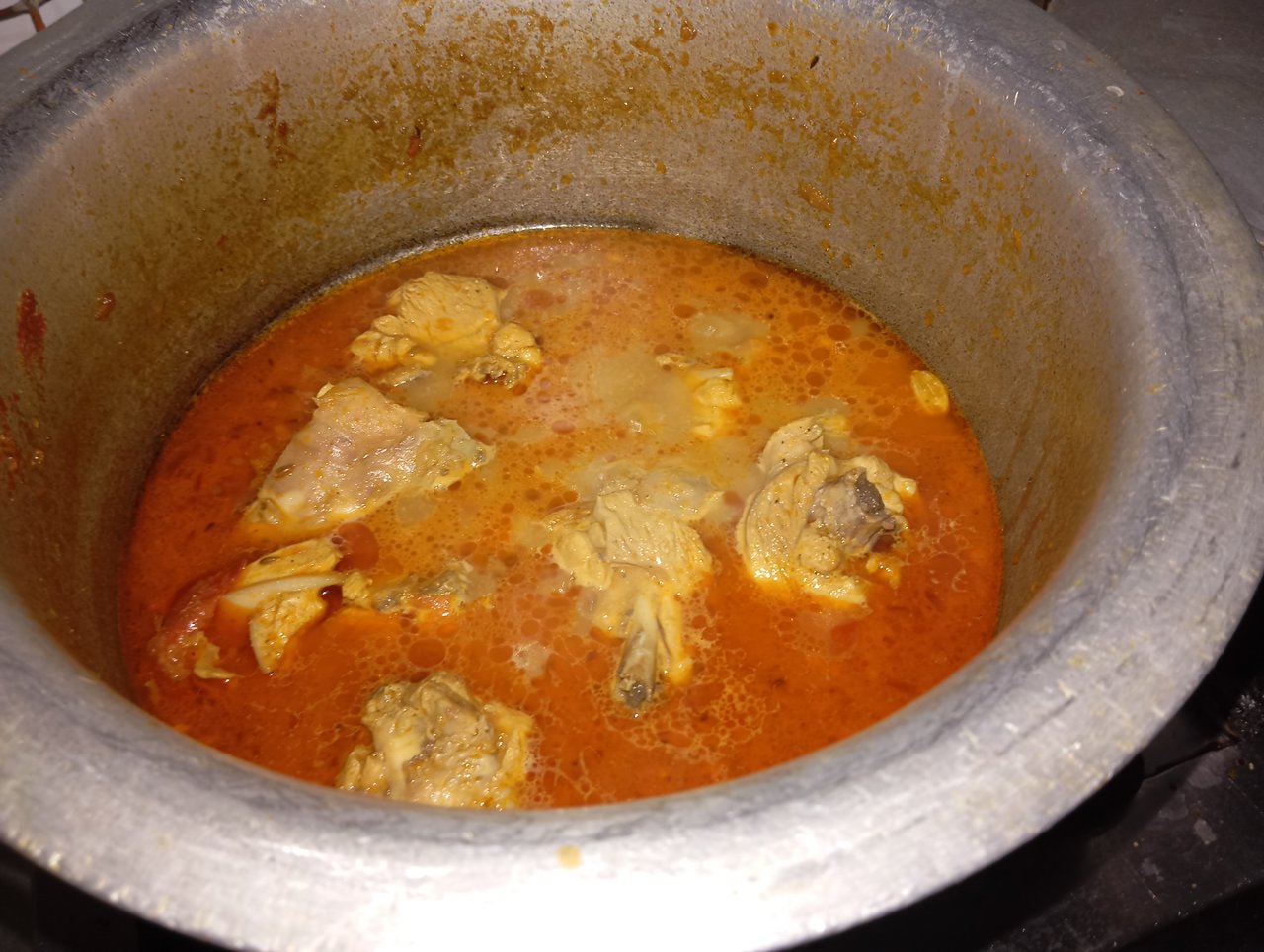 My elder son going to market and bring some groceries.Today I made in the lunch chicken curry with boiled rice.because this is my family favourite dish .I made chicken curry twice a week.first I have prepared cooked .fry the chicken in oil add all the spices when the chicken change the colours add some tomatoes and yougrt and the other hand i made boiled rice.
