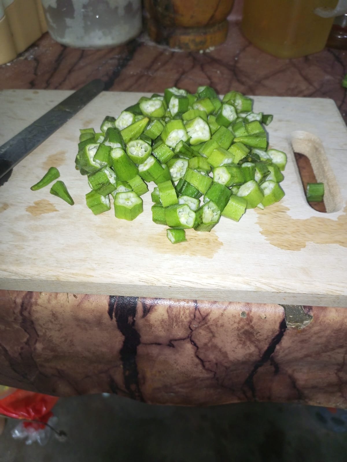 We are doing prayer maghrab.then going to kitchen for preparing dinner .Today I make lady finger ki subzi and shaming kabab.first of all I washed and cut all the lady finger. Then I cooked this vegetable.preparing bater of shaming kabab when the batter is ready I am frying it and making breads my daughter helped me she knead the dough and I am making breads.