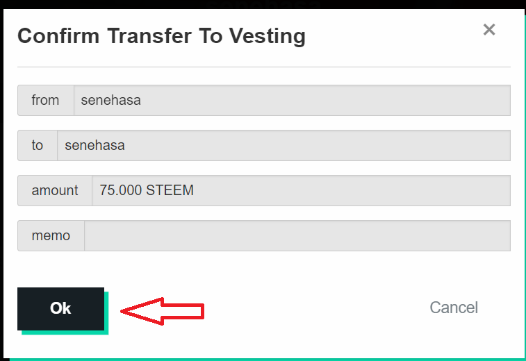 When I did this, the image "confirm transfer to vesting" appeared, and I then clicked the OK button. The image then appeared, and I pressed the OK button to transfer my vesting.