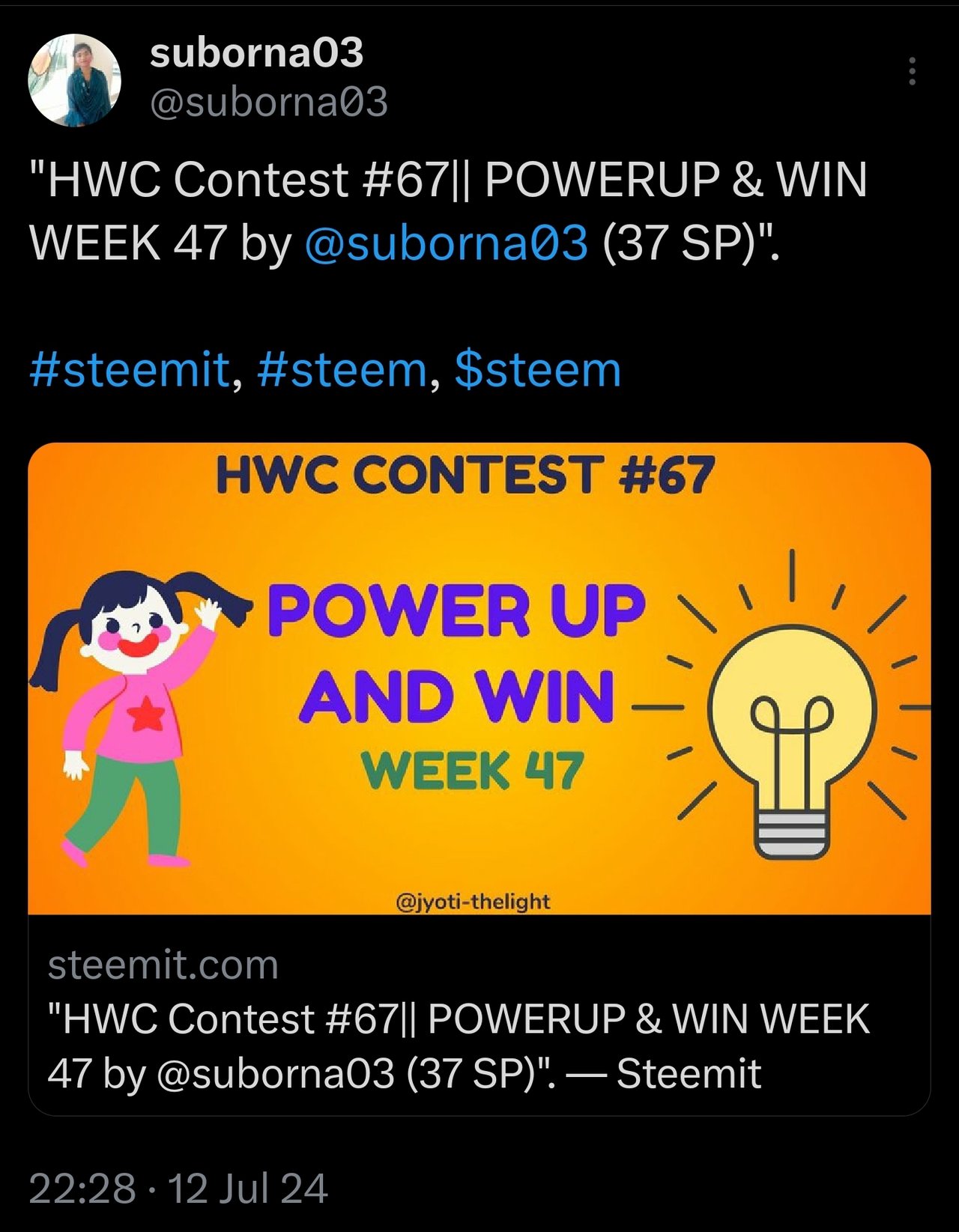 "HWC Contest #67|| POWERUP & WIN WEEK 47 by @suborna03 (37 SP)".