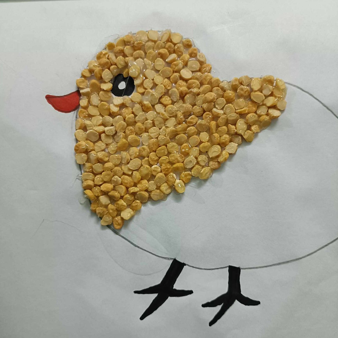 In the next step, I completely completed the duckling's eyes and legs with a black pen and completely drew the beak with red pen.