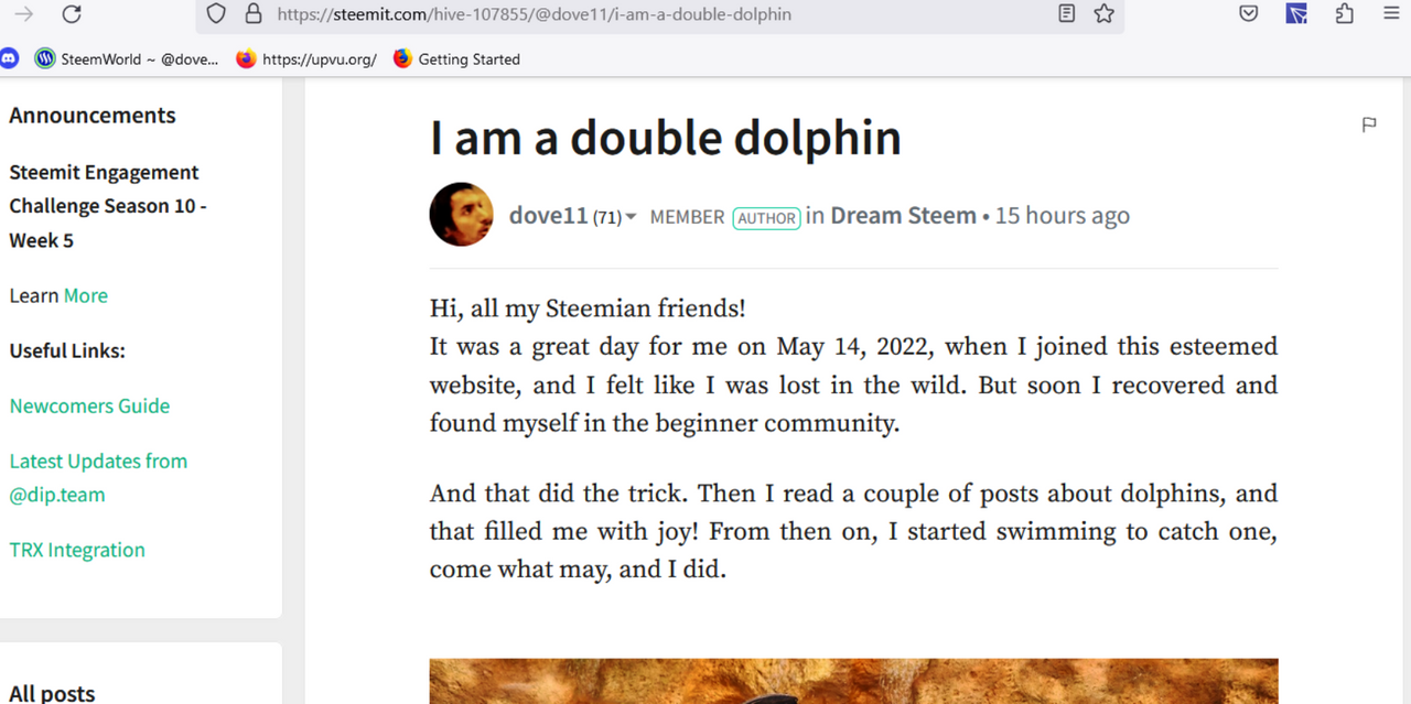 Last night I logged out of Steemit much earlier than my regular time so the first thing that I noticed this morning a big vote on my dolphin post.